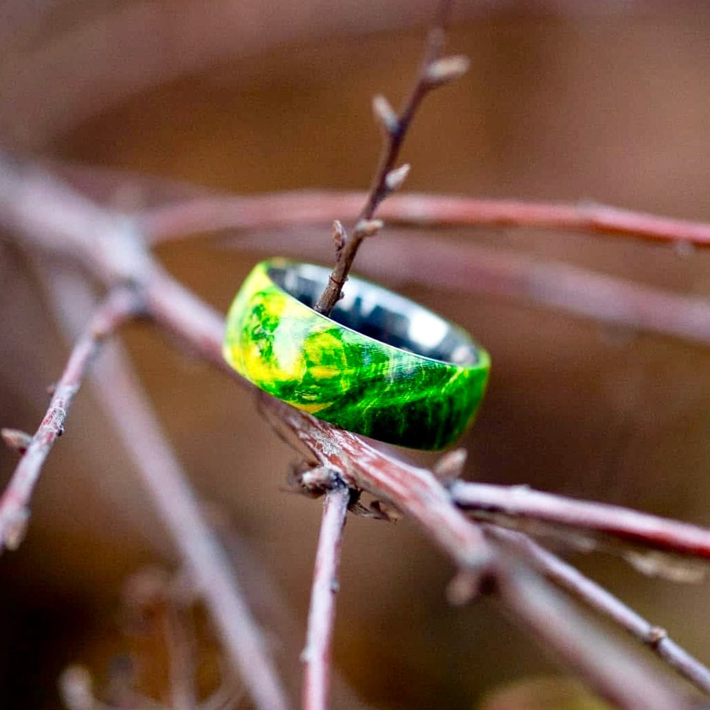 Bague en tungstène et bois d'érable infusé vert