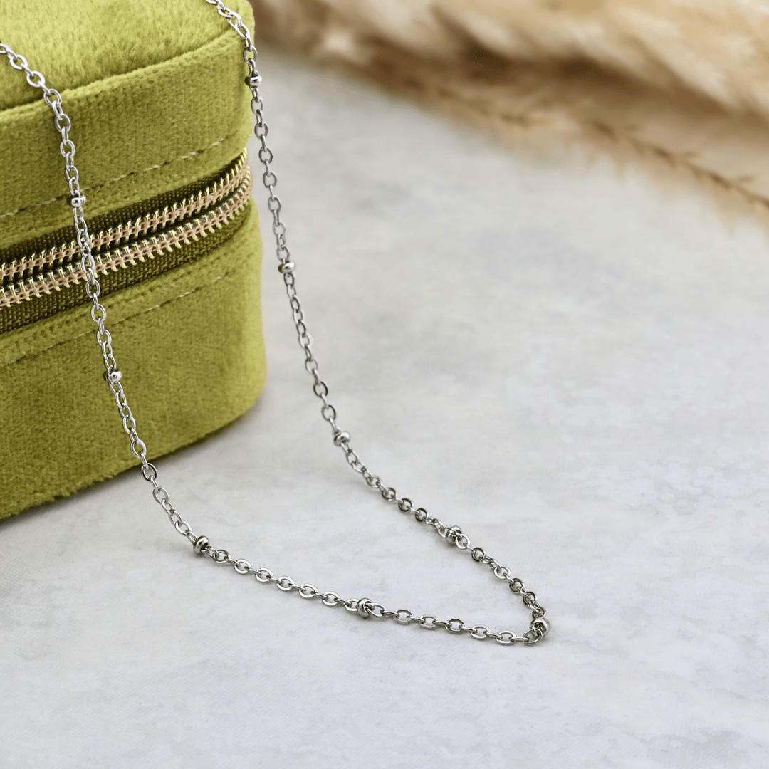 Chaîne Billes en acier inoxydable, fine et discrète. Un basique polyvalent à porter seul ou en superposition, pour tous les jours.