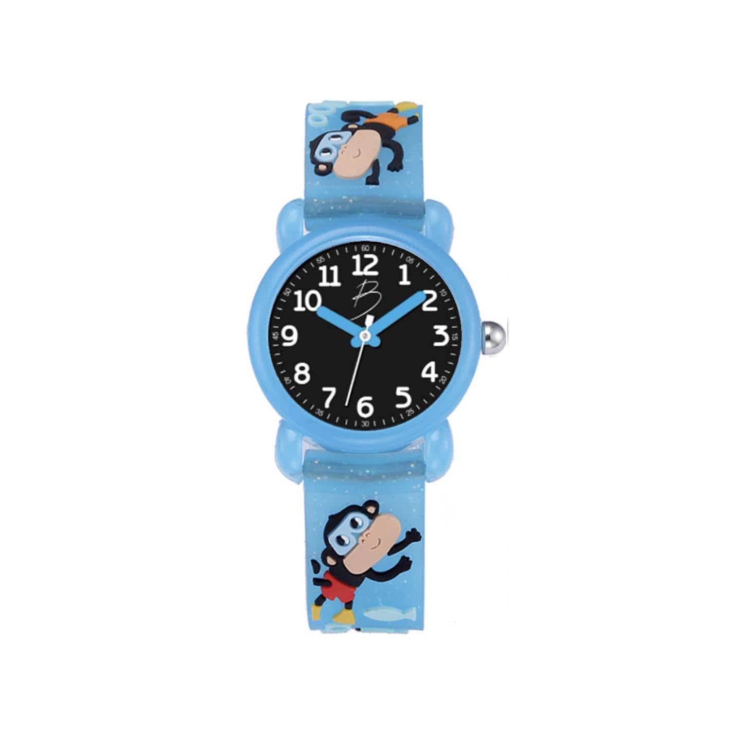 Immerse yourself in a captivating adventure with the Monkeys watch. Its vibrant blue bracelet highlights monkeys in relief, ready to explore the seabed. This unique watch combines style and imagination while keeping an eye on the time.