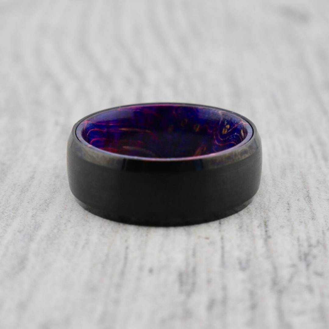 Tungsten ring and Mauve Infused Maple Wood