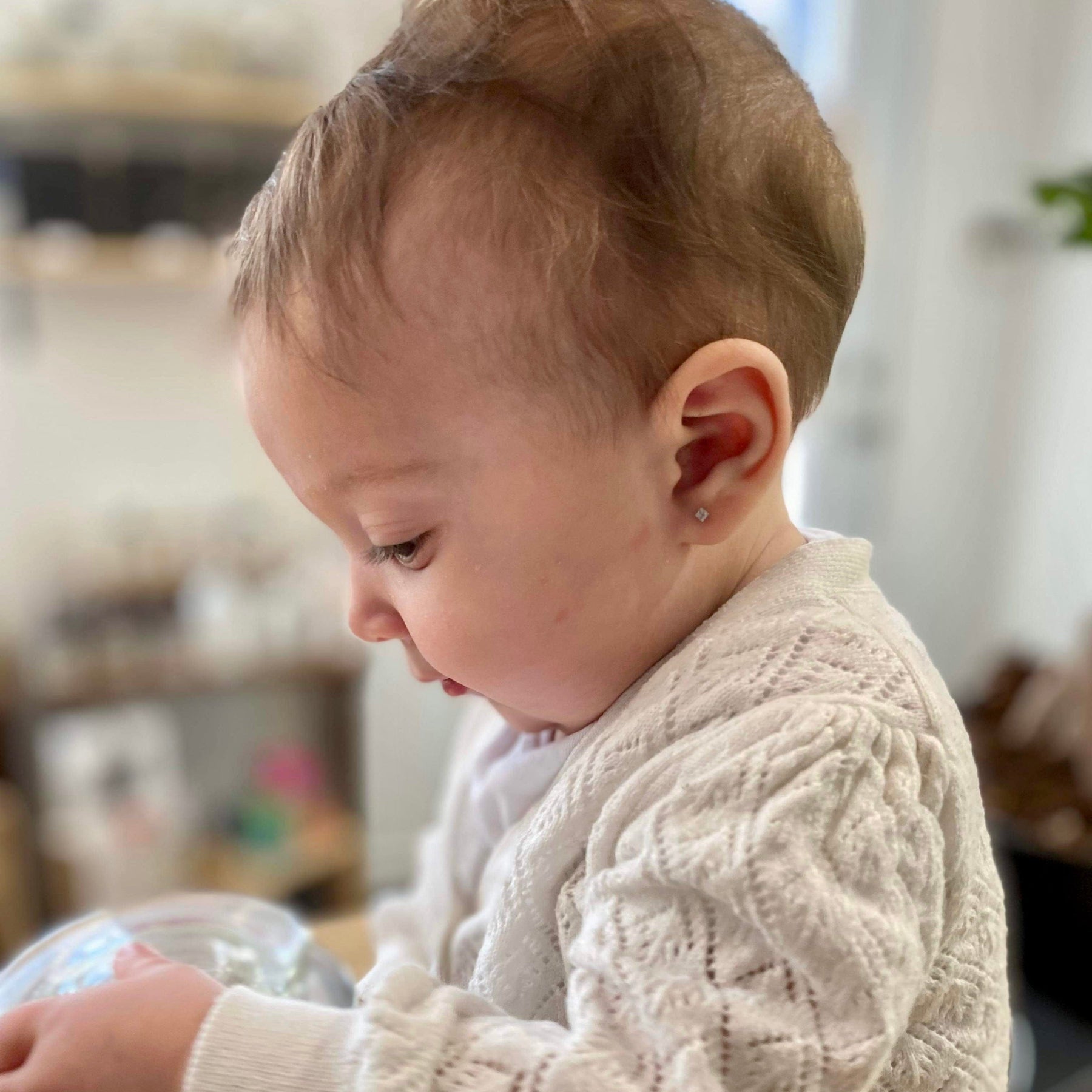 Pair of Les mini Carrés earrings with moissanites set in 10K gold, with screwed back studs and clasps. They are perfect and comfortable for a child, but also for a teenager or adult.