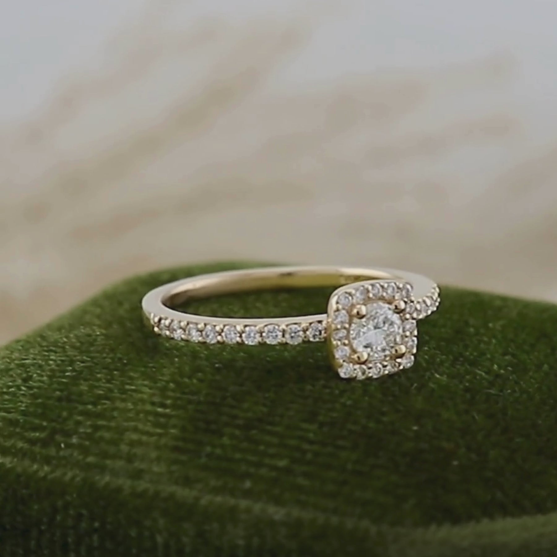 Classic Halo Solitaire 14K - 18K Gold and Round 0.45 ctw Diamonds Ring