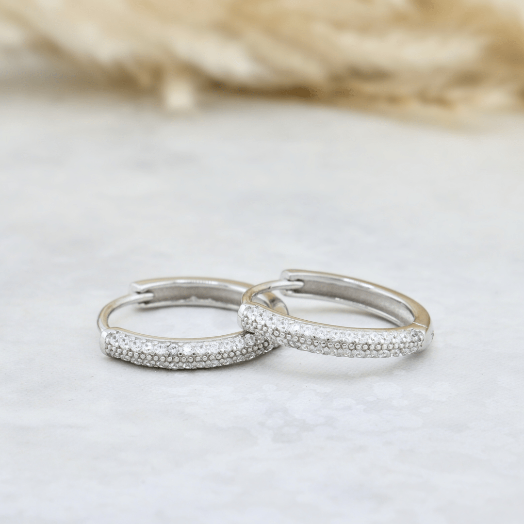 Huggie earrings with cubic zirconia set in 925 sterling silver. They are perfect and comfortable for a child, but also for a teenager or adult.