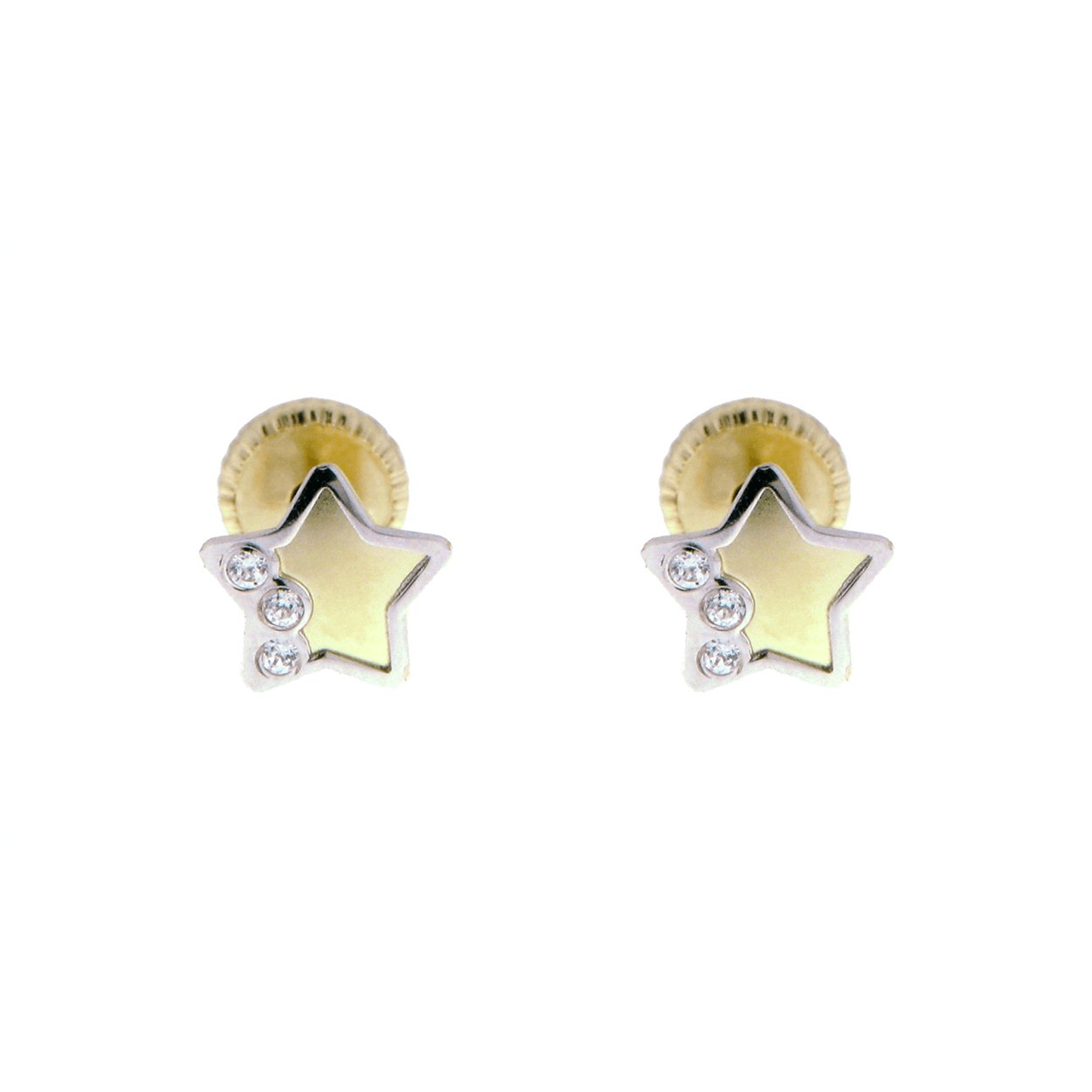 6 x 6mm star earrings and cz onWhite and yellow gold 10k with screwed stems.