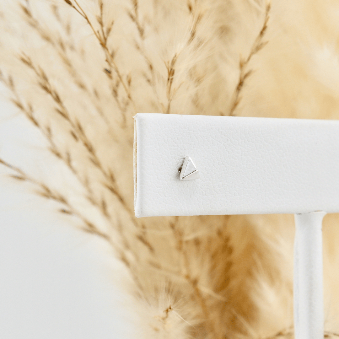 Succumb to the refined elegance of a pair of small sterling silver earrings with a pyramid design. A symbol of minimalist refinement to subtly enhance your style.
