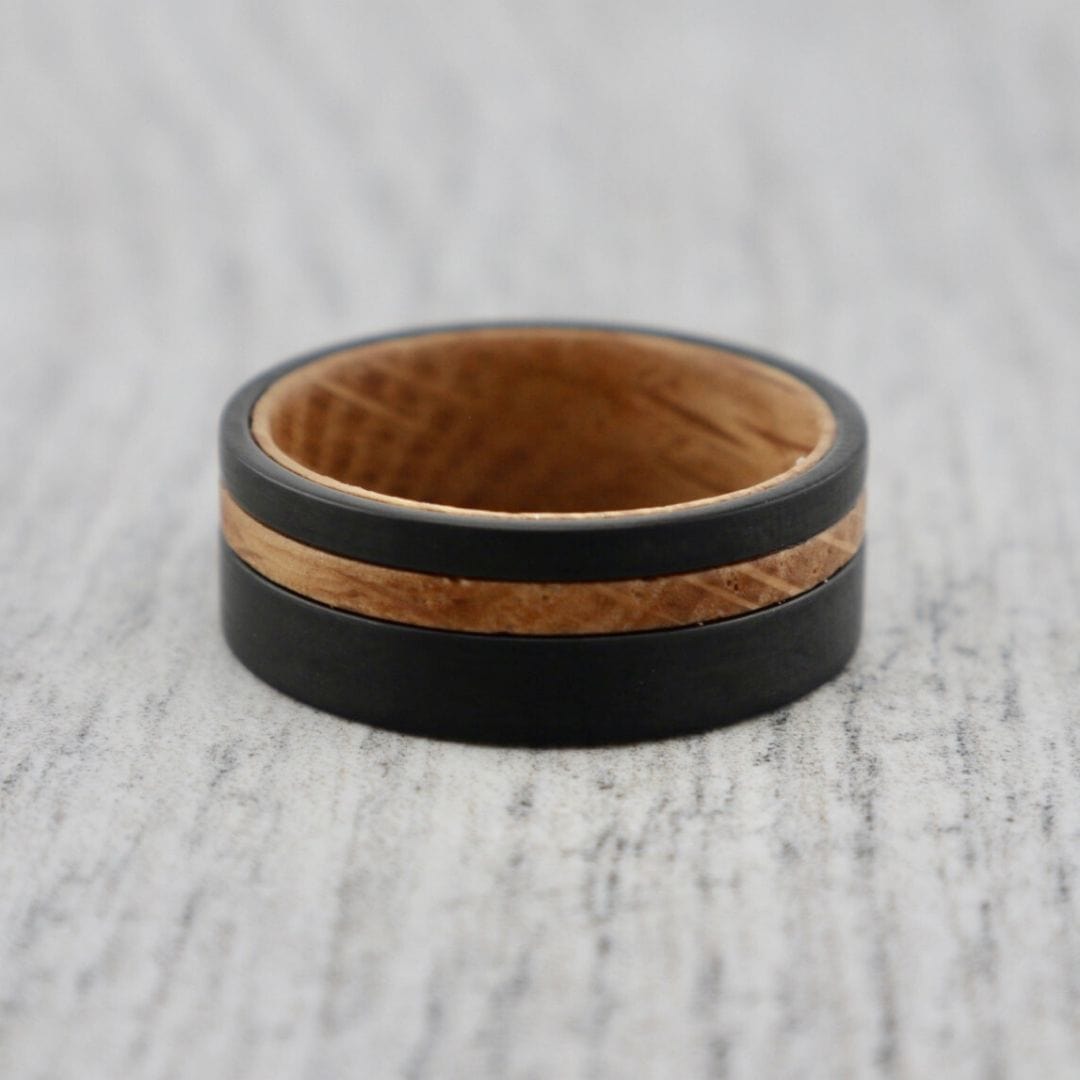 Les bagues Roadtripmadewood ont commencé leurs vies dans les fûts de whisky fabriqués en chêne. Tous le bois des barils sélectionnés sont très similaires, mais pas identiques. Ces bandes sont fabriquées à partir de bois récupéré provenant des fûts vieillis. La plupart du bois que nous utilisé contient des traces de chêne carbonisé unique!